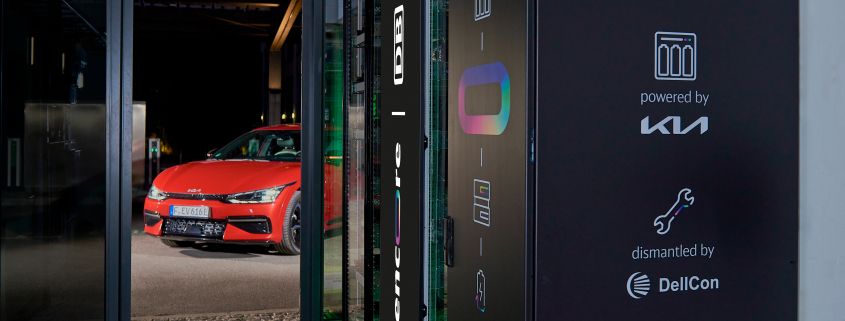 Das Deutsche Bahn-Startups encore | DB hat einen Energiespeicher entwickelt, der als Prototyp auf der zeeMobase auf dem EUREF-Campus in Berlin eingesetzt wird. Gespeichert wird der Strom in gebrauchten, acht Jahre alten, Elektroauto-Batterien des koreanischen Autobauers Kia. Der Prototyp hat eine Kapazität von 70 kW.