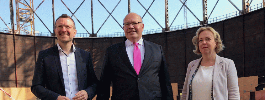 Wirtschaftsminister Peter Altmaier gehört zu den gern gesehenen Gästen auf dem EUREF-Campus. Am 3. September wurde er von EUREF-Vorständin Karin Teichmann begrüßt.