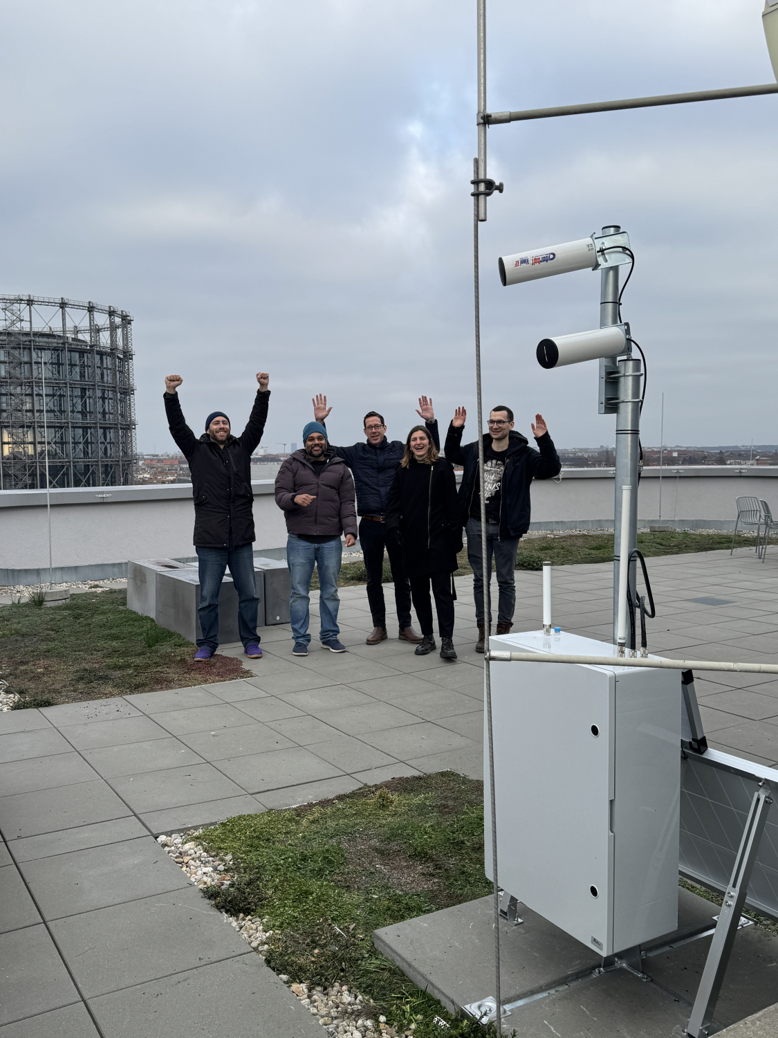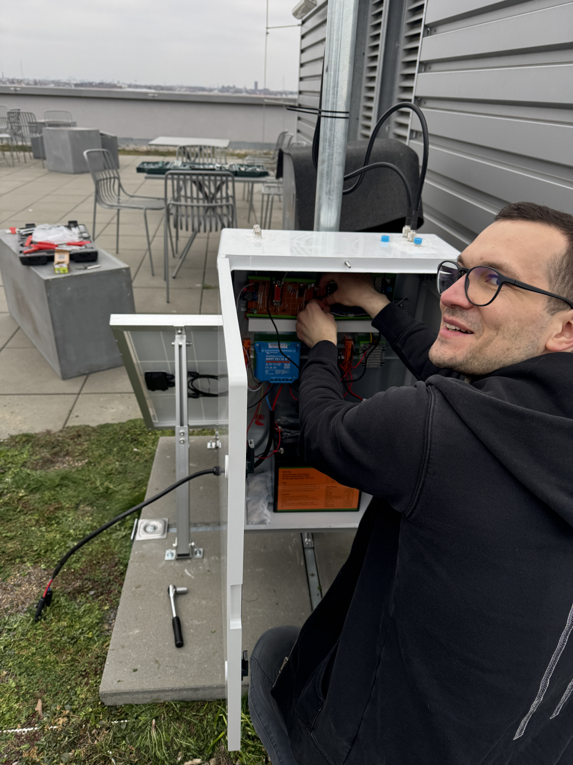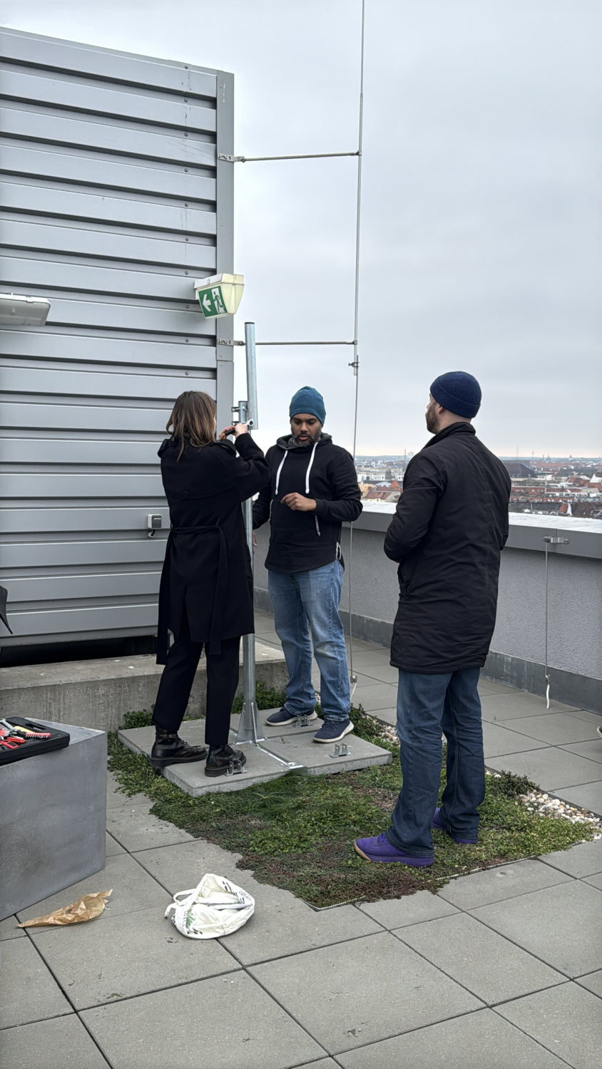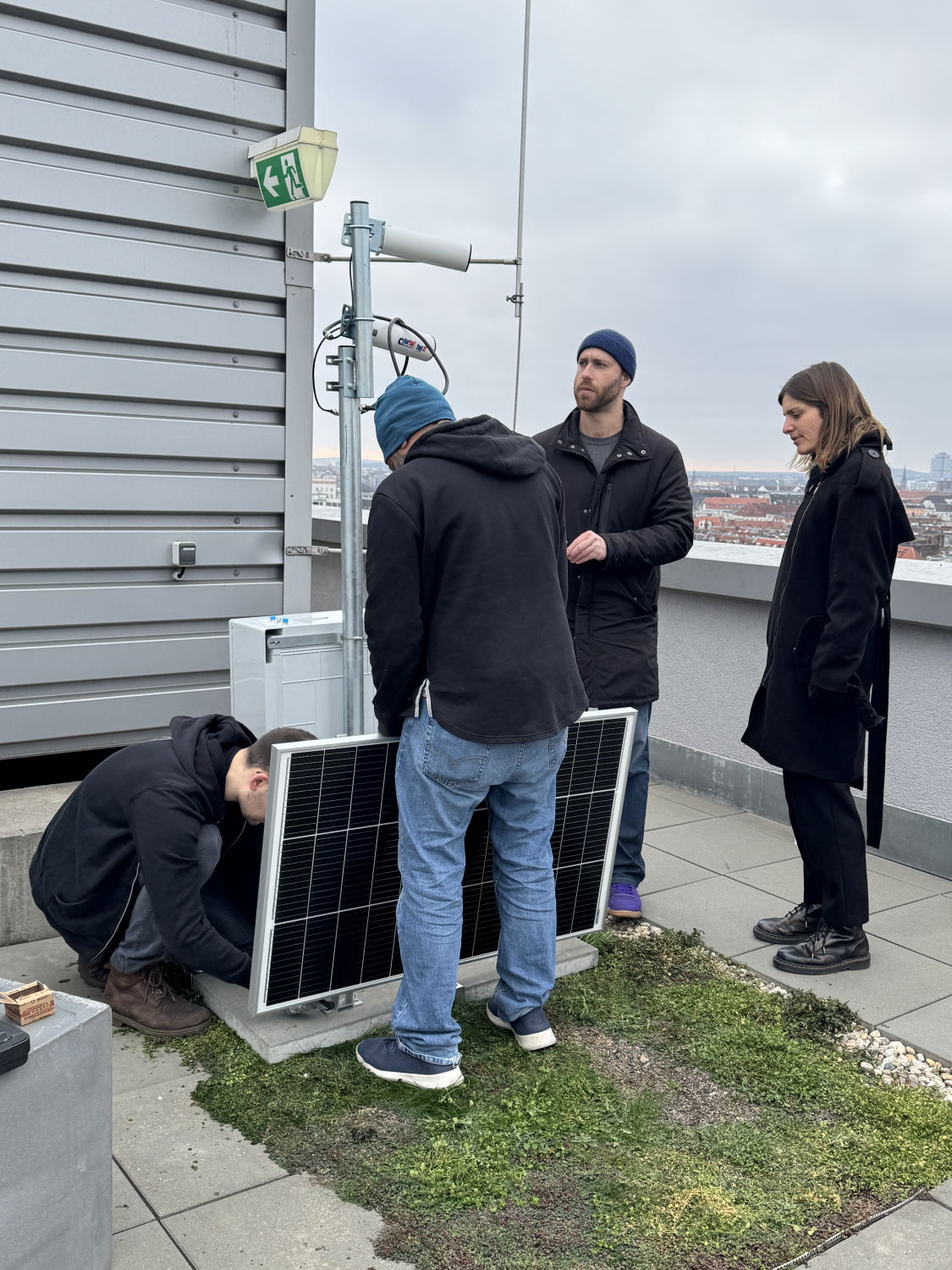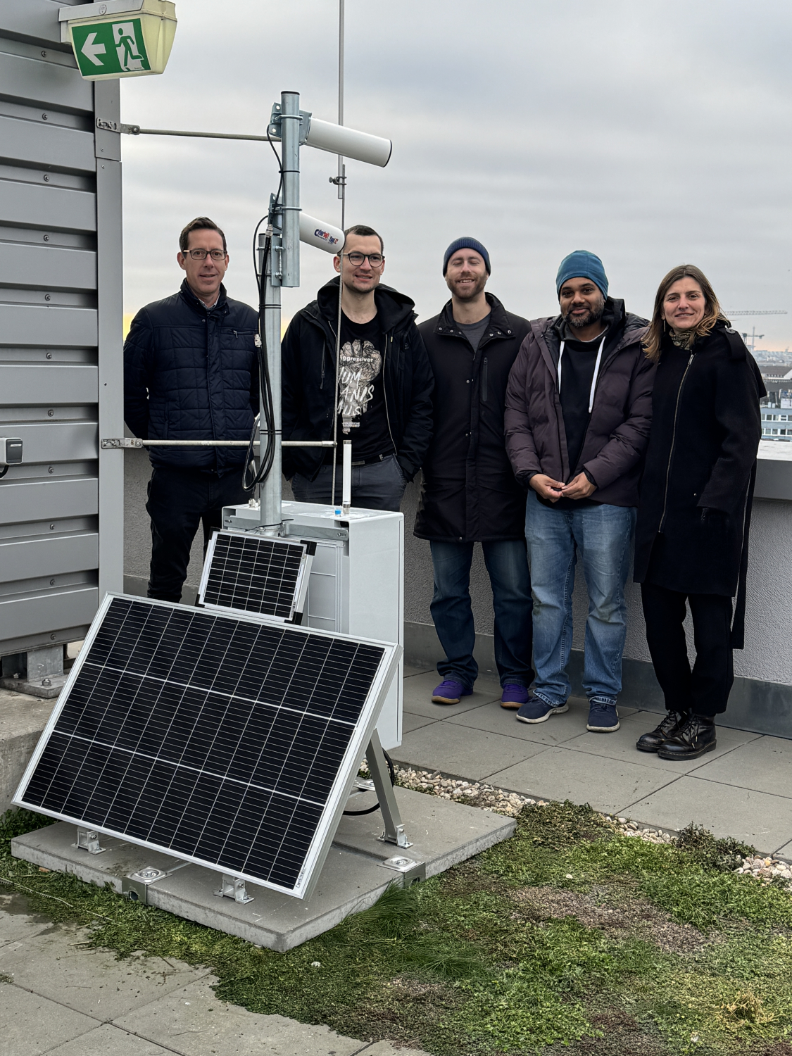Die Technologiestiftung Berlin entwickelt im Rahmen des Projekts Kiezbox 2.0 eine innovative, stromautarke Kommunikationsinfrastruktur, die sowohl im Alltag als auch in Krisensituationen wie Stromausfällen eingesetzt werden kann. Hierzu werden 12 bis 20 Kiezboxen in einem Pilotgebiet in Schöneberg installiert, darunter auch bei uns auf dem EUREF-Campus Berlin. Das Projekt-Team der „Kiezbox 2.0.“ hat dazu heute auf dem Dach des Gebäudes 1-2 eine Kiezbox installiert.