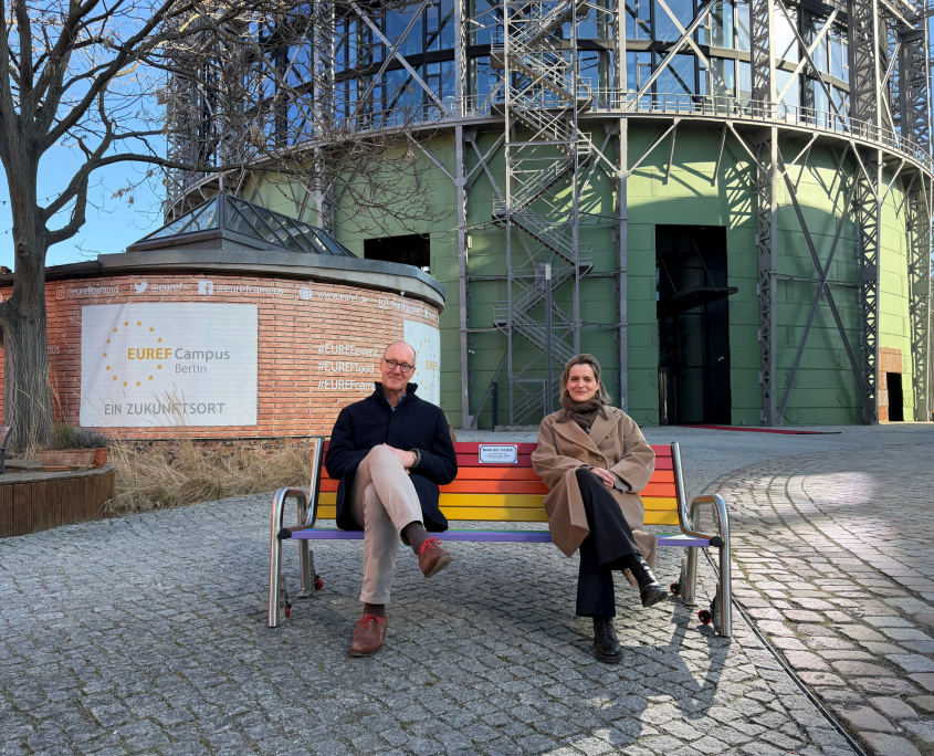 Zusammen mit der GASAG-Gruppe wird die „Diversity-Bank“ auf Wanderschaft über den gesamten EUREF-Campus gehen. Die „Bank der Vielfalt“ steht symbolisch für Offenheit, Begegnung und Dialog.