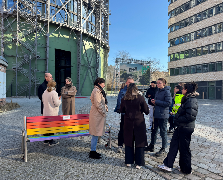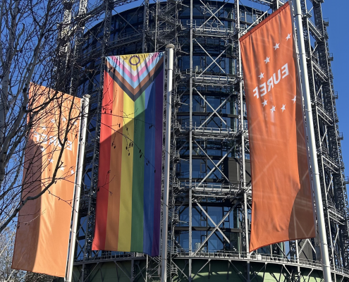 In den vergangenen Jahren hat die Community des EUREF-Campus Berlin klare Zeichen für Vielfalt gesetzt: Mit der Unterzeichnung der Charta der Viel-falt bekennt sich die EUREF AG zu einem respekt-vollen, chancengerechten Arbeitsumfeld, unabhängig von Herkunft, Identität oder Orientierung. Gemeinsam mit der GASAG-Gruppe wurde die Progress-Pride-Flagge vor dem Gasometer gehisst – sichtbar, dauerhaft und trotz wiederholter Zerstörung als klares Signal: Vielfalt ist nicht verhandel-bar.