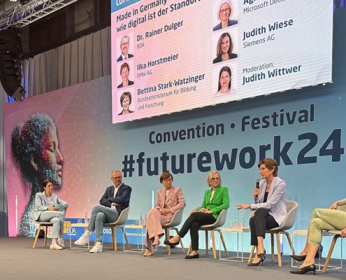 #eurefcampusAm 20. Juni 2024 fand auf dem EUREF-Campus in Berlin zum sechsten Mal das Festival #futurework24 statt. Die Veranstaltung, organisiert von der Bundesvereinigung der Deutschen Arbeitgeberverbände (BDA) und Microsoft, fokussiert sich auf die nachhaltige Gestaltung der Arbeitswelt der Zukunft.