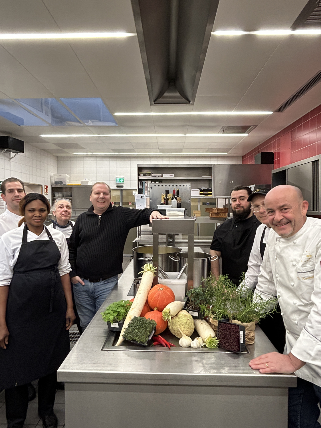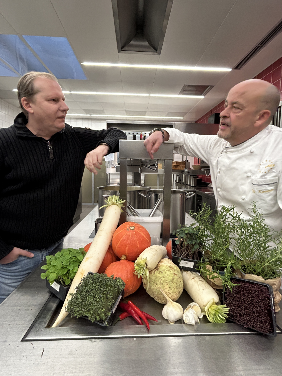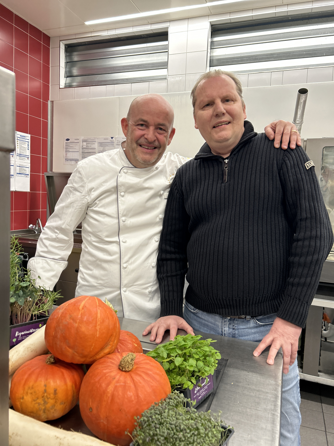 Ein Ausdruck des Dankes für die erneute Unterstützung und die freundschaftliche Beziehung zu KUBUS war auch der Besuch von Gernot Zessin, der bei der gemeinnützigen Gesellschaft für die Öffentlichkeitsarbeit verantwortlich ist. Er nutzte die Gelegenheit, um Thomas Kammeier und das Gastro-Team beim Zubereiten der Suppe über die Schulter zu schauen.